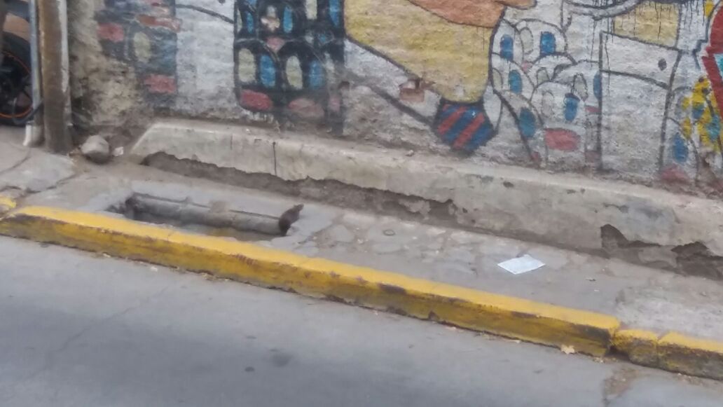 "Como podrán observar, las alcantarillas del Pasaje Güemes no solo están en pésimo estado, sino que además no tienen rejillas resultando por ello un grave peligro para los peatones también que en gran cantidad circulan por esta zona", agregó.