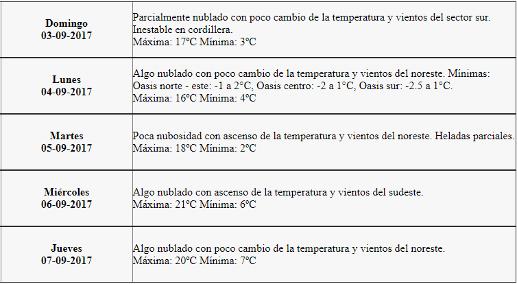 Para este lunes, el pronóstico indica máxima de 16 y mínima de 4 grados para el Gran Mendoza, según lo informado por Contingencias Climáticas, mientras que el Servicio Metereológico Nacional también emitió un pronóstico extendido que contempla temperaturas similares en las mínimas y máximas.