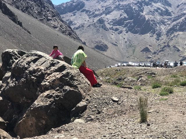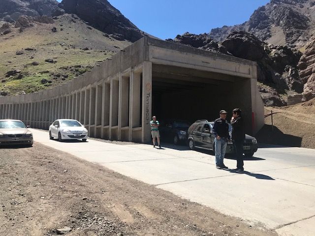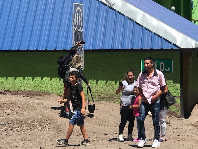 Primer viaje... ¡selfieeeee! (en la entrada al baño). También por estos días se ve a muchos que cruzan por primera vez. Además de andar peguntando todo sobre papeles, la peligrosidad de los Caracoles, la distancia de los outlets con respecto a las playas, o sobre los riesgos de la altura, se toman selfies en sitios insólitos. Por ejemplo, en la entrada al baño, en donde muchos reúnen presurosos a los hijos para seguir el camino.