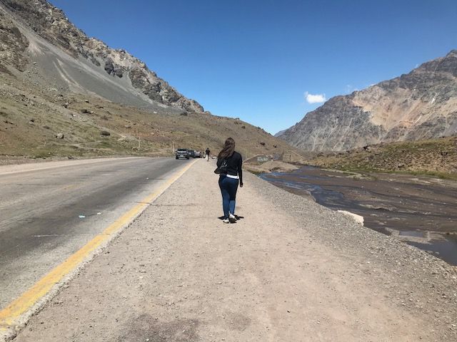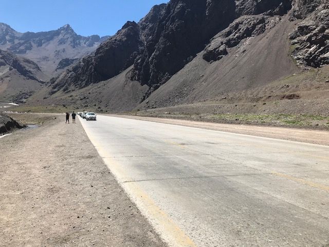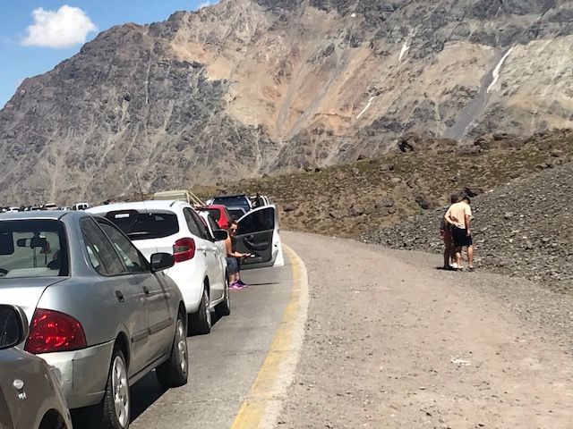 La que se bajó a contemplar el paisaje y el auto que la llevaba avanzó más de la cuenta. Pasa. Es cuestión de "salgo a tomar un poco de aire". mientras tanto, la cola pega un avance fuerte y se te fue la familia. A caminar...