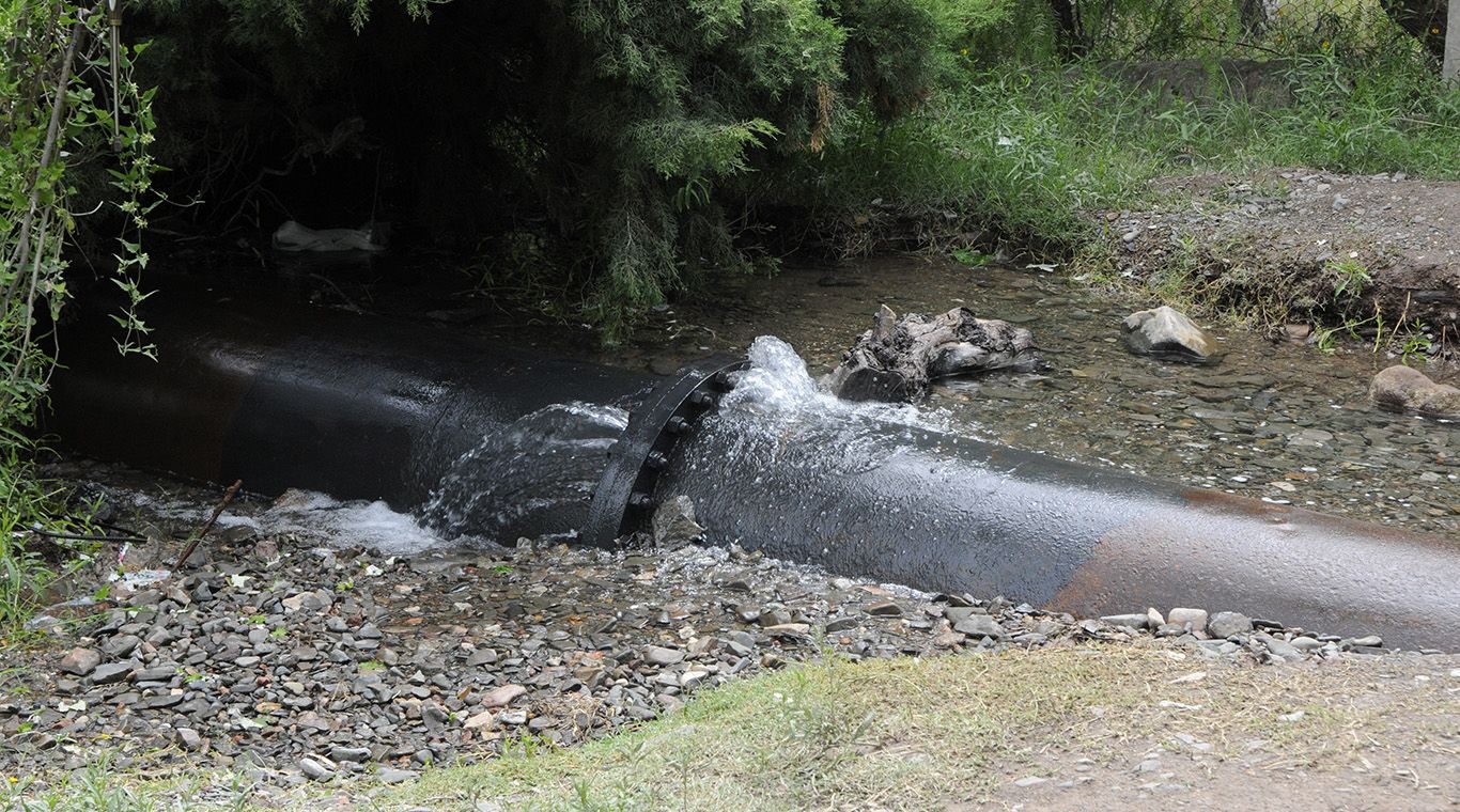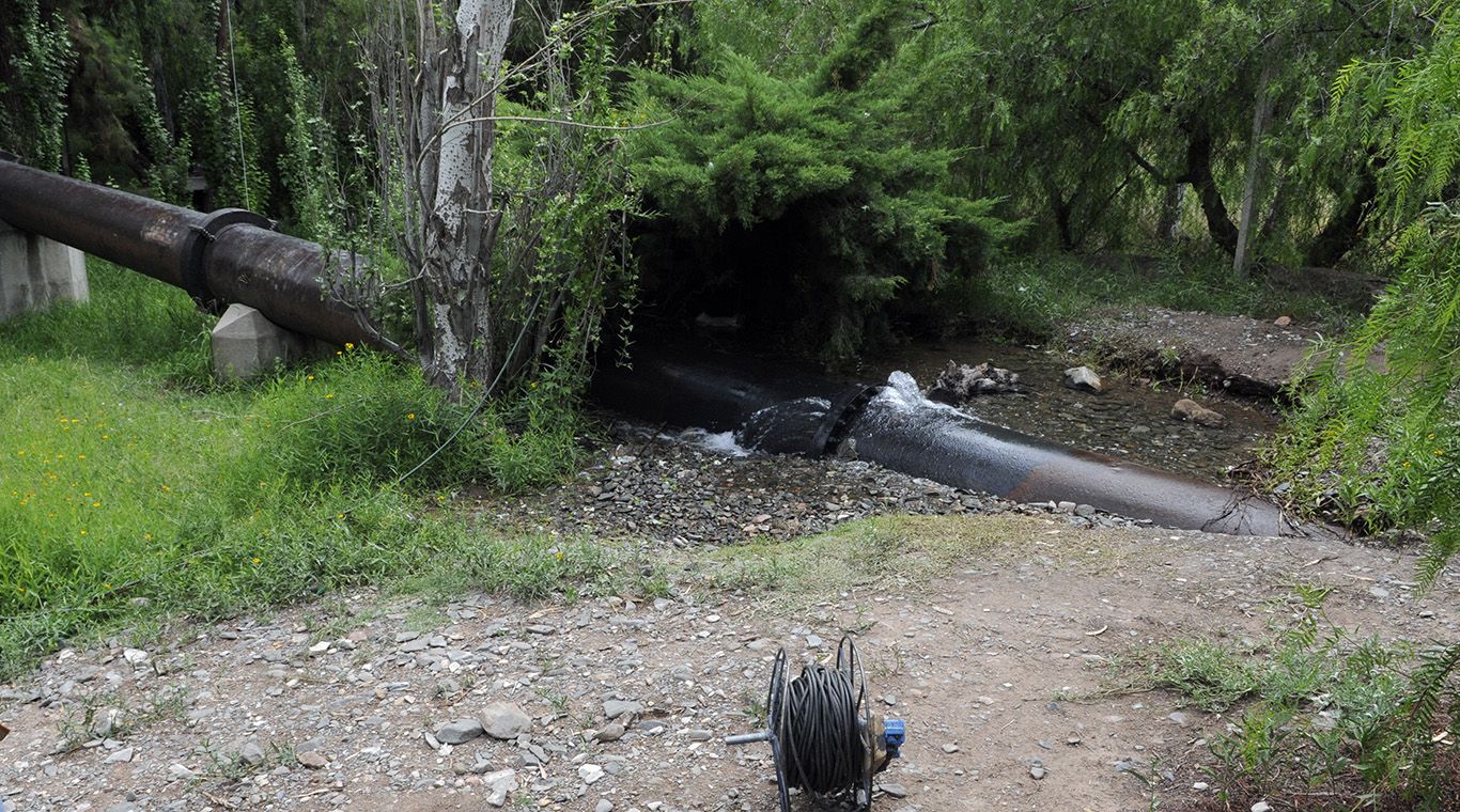Se trata de un caño madre que transporta agua hacia Algo Godoy. Lectores de MDZ alertaron sobre el problema. Operarios trabajan en el lugar.