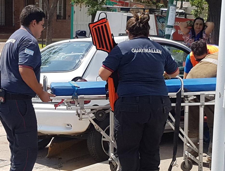 Un conductor protagonizó un aparatoso accidente este mediodía, al quedar incrustado con su auto en la vereda del WalMart de Guaymallén.
