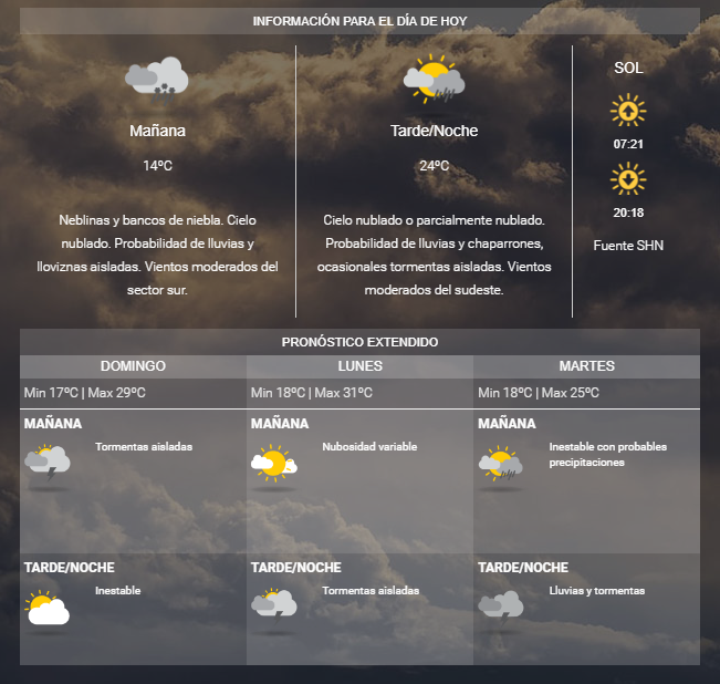 Mientras que el pronóstico emitido por Contingencias Climáticas anticipa precipitaciones aisladas hacia la noche, vientos del noreste e inestable en cordillera; mientras que para el domingo, el pronóstico es parcialmente nublado con ascenso de la temperatura, vientos del noreste, tiempo inestable, vientos del noreste.