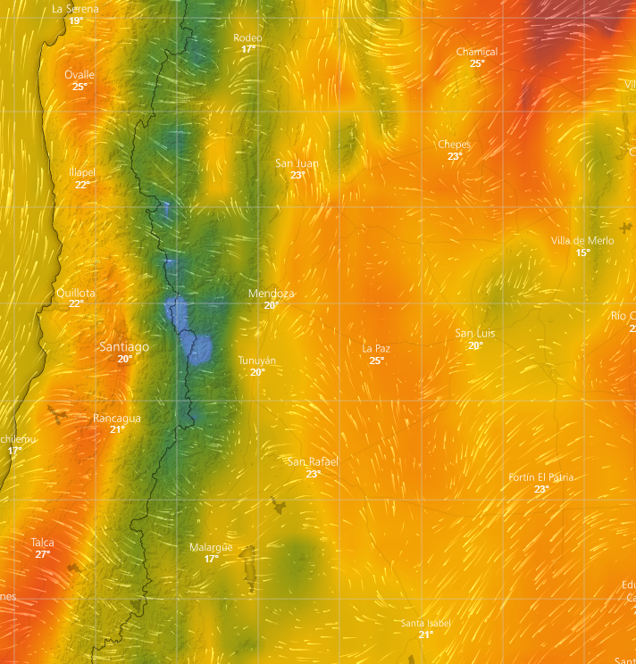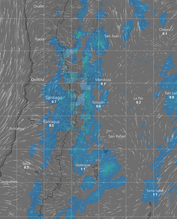 En tiempo real. Las precipitaciones y temperatura en Mendoza, oeste argentino y zona central de Chile