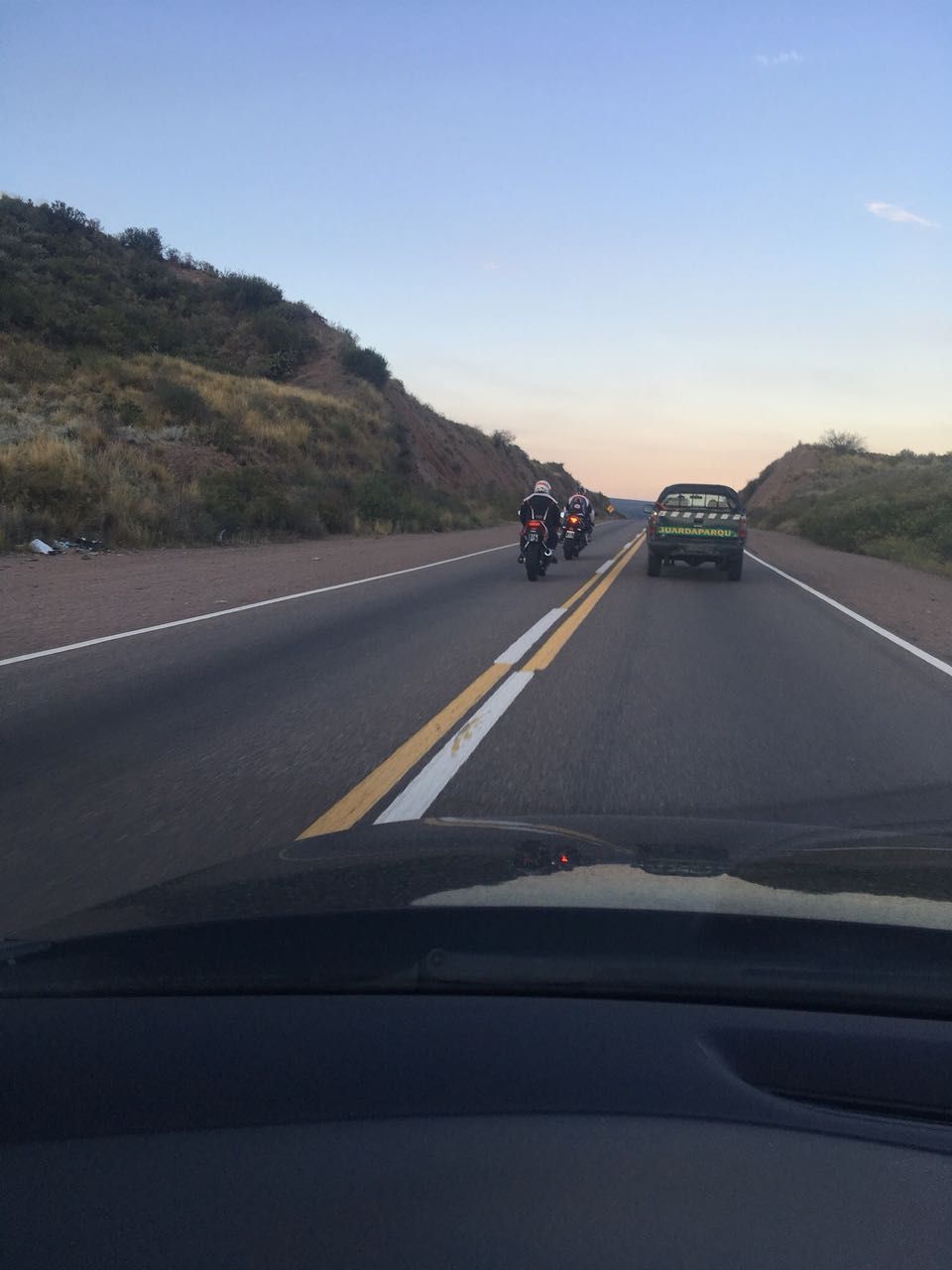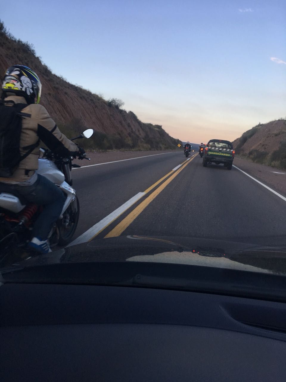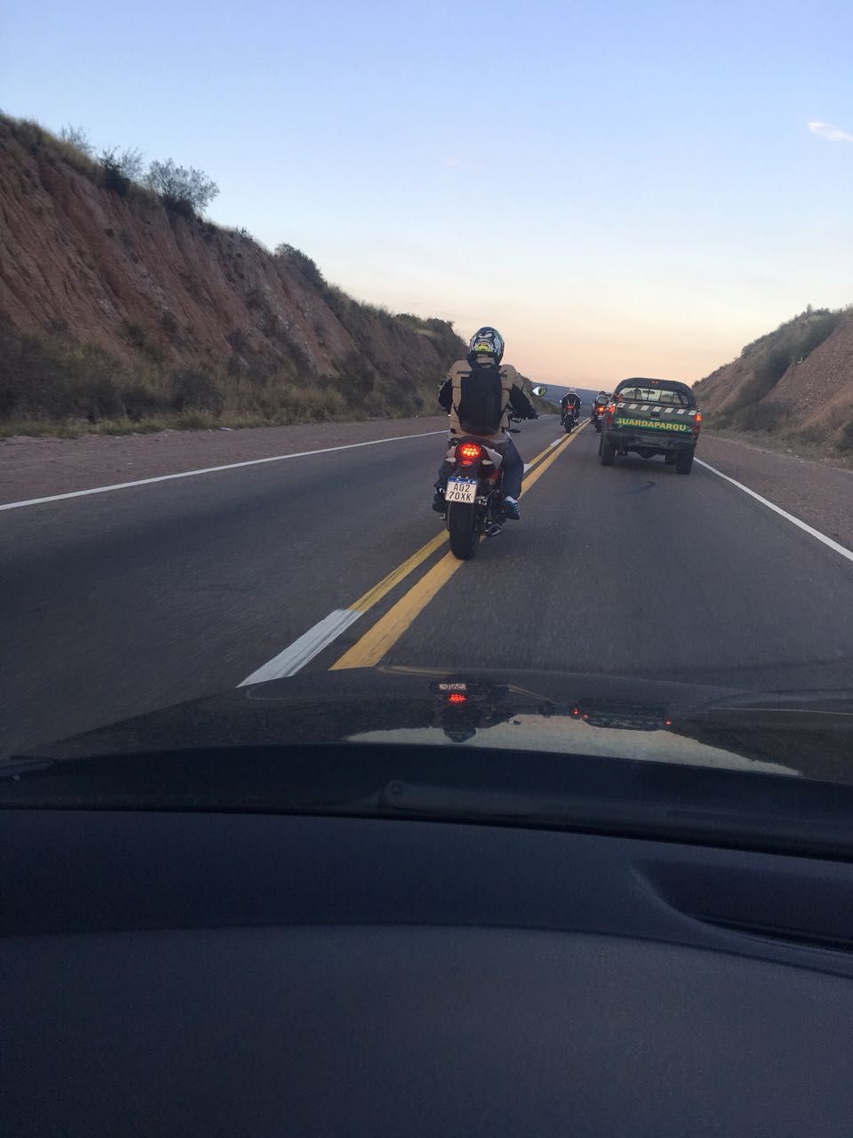 Lo fotografió un lector de MDZ: dos motos pasando la doble línea amarilla el domingo al anochecer en Agua de las Avispas, una zona que tiene un largo historial de incidentes de tránsito. Sin palabras: