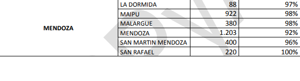 El grado de avance de obra en Mendoza es del 93%, mientras que la evolución en las construcciones es similar a la de otras provincias. En Mendoza se están construyendo viviendas del Procrear en Santa Rosa, Maipú, Malargue, San Martín, San Rafael y en Mendoza capital. En la mayoría de los departamentos mencionados el grado de avance de las obras es importante. De hecho, los informes oficiales muestran que se está trabajando en los últimos detalles antes de la entrega.