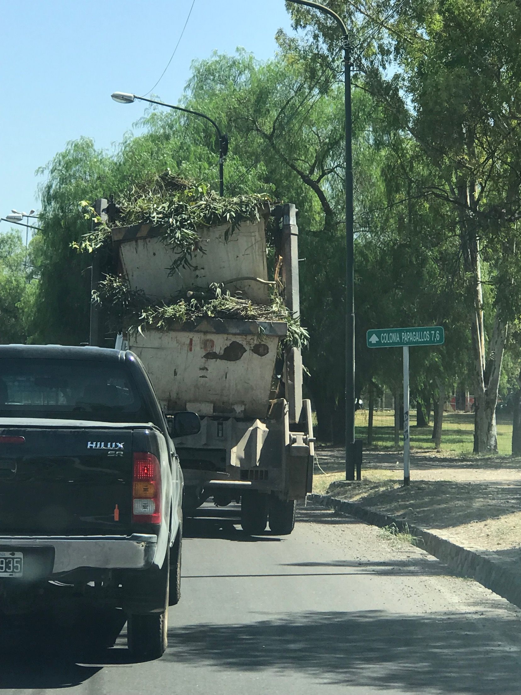 Lectores de MDZ enviaron la imagen de un camión portador de contenedores. Llevaba dos juntos y cargados hasta el tope con ramas. ¿Se puede circular así?