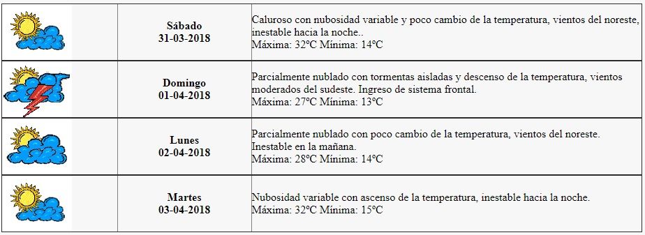 Contingencias Climáticas indicó en su pronóstico que la míunima de hoy fue de 14º, y la máxima será de 32º. Además advirtió que habrá inestabilidad hacia la noche, y vientos del noreste.