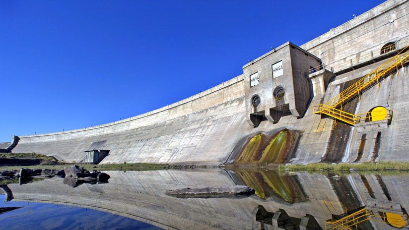 "Durante 25 años no ingresó una gota de agua al cauce", recordó Gómez. Lo que había sido una zona fertil y productiva en medio del desierto dejó de existir. "La ganadería ovina que era muy importante y la base productiva de la región desapareció y la población emigró abandonando el territorio", añadió el presidente de la Fundación Chadileuvú. Represa El Nihuil en Mendoza, Argentina. Octubre de 2003.