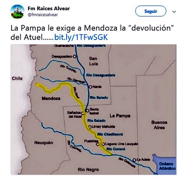 "Los pampeanos vivimos este problema como un despojo y una injusticia, para nosotros Mendoza nos robó el Atuel con la complicidad de los distintos gobiernos nacionales", agregó. Y finalmente remarcó que El Atuel es "una causa de todos los pampeanos" independientemente "de las ideas políticas o religiosas". "Queremos que nuestro oeste deje de ser una zona postergada y sin perspectivas, queremos que el Derecho Humano al agua y a una vida digna sea una realidad y no una promesa", concluyó.