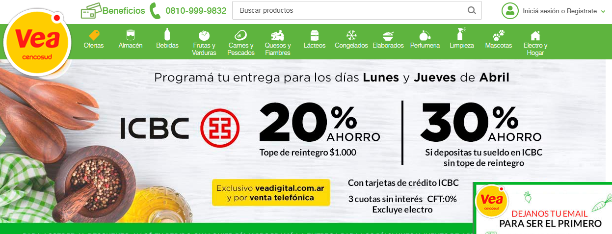 VEA hace más de un año implementó el sistema de venta on line, con una tienda digital. No cuenta con servicio de entrega a domicilio, pero ofrece la posiblidad de retirar en la tienda que al consumidor le acomode. Son 25 los Veas en Mendoza adheridos a este sistema, muchos de ellos ubicados fuera del Gran Mendoza.