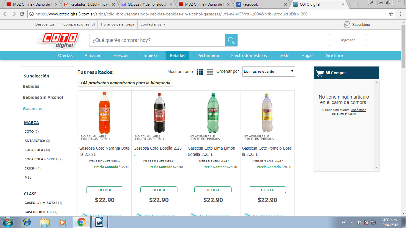 Los precios de los productos son iguales que en el supermercado, explica la encargada de e-commerce a MDZ. "Tenemos los mismos precios en la tienda digital que en los supermercados, pero hay promociones distintas, además hay descuentos con promociones bancarias interesantes, que llegan al 30% de descuento del total de la compra en algunos casos", agrega Jepsen.