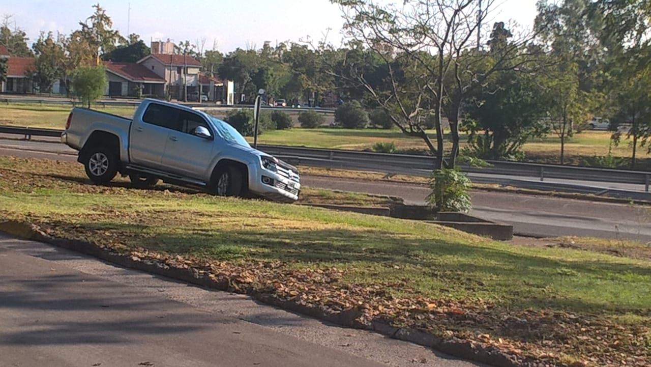 Las imágenes no cuentan la historia completa, pero sí una parte: una camioneta se accidentó en el Acceso Este y no pudo salir de la banquina.