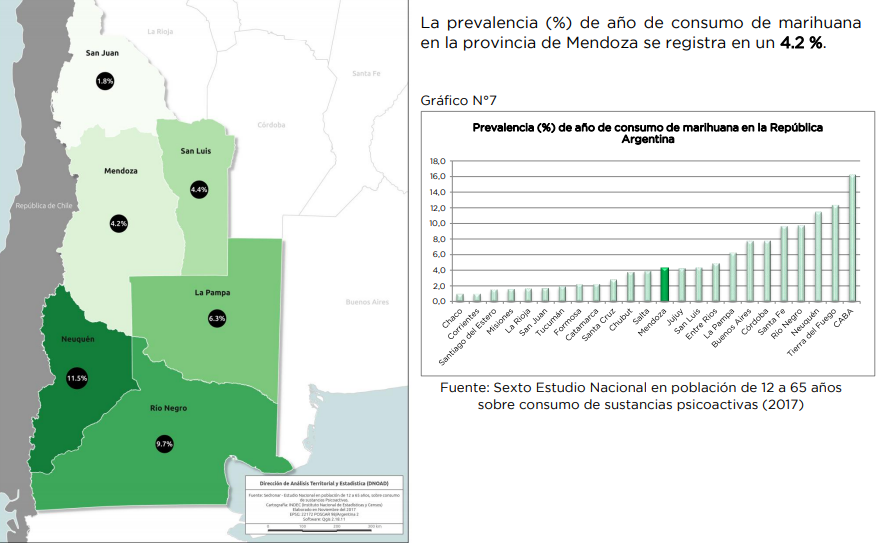 El Observatorio Argentino de Drogas, que depende del Sedronar, realizó en 2017 el sexto Estudio Nacional sobre consumo de sustancias psicoactivas. El foco estuvo puesto en la población que va de los 12 a los 65 años. Los resultados son alarmantes: se duplicó el consumo en todo el país y Mendoza presenta características similares a otras provincias en cuanto a ese preocupante aumento en los menores de edad.