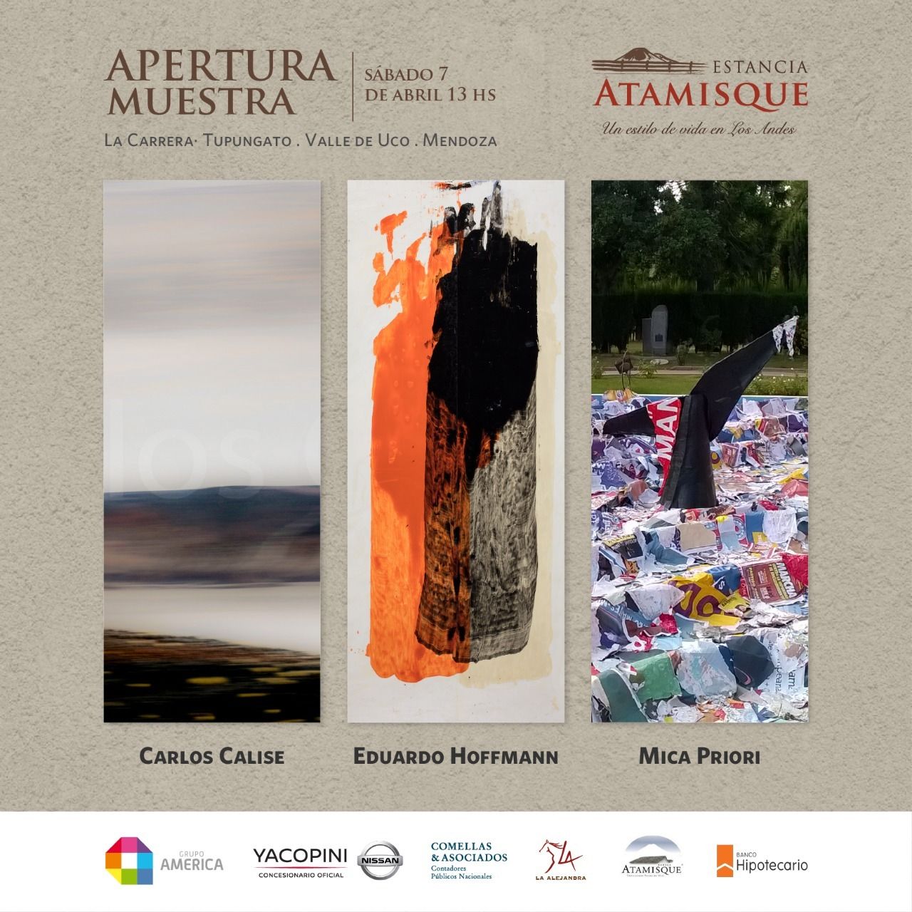 Tres gigantes de las artes como son Eduardo Hoffman, Carlos Calise y Mica Priori expondrán desde el sábado 7 de abril a las 13 en Estancia Atamisque, un lugar de ensueño ubicado en la entrada a Tupungato.