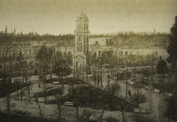 La torre del reloj en la plaza Cobo, circa 1885. (Archivo)