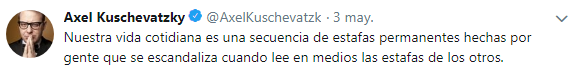 Hay otros, como el periodista y analista político Francisco Balázs que no ve al malhumor social como una mera catarsis, un necesario escape a la frustración, sino "como una herramienta concebida para generar la sensación de desgobierno y caos. Es la bolsa donde va a parar todo, sin discriminación ni análisis responsable de contexto. Es la mezcla en donde todo cabe, lo justificable con lo extemporáneo y oportunista, lo irracional con lo racional, lo violento y lo extorsivo con demandas genuinas. Es el terreno fangoso, peligroso, en donde queda fundida la sensación de desolación, lindante con el caos".