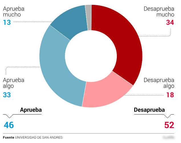 Según la medición de abril, el índice de confianza en el Gobierno (ICG) cayó al nivel más bajo desde que asumió Mauricio Macri: 2,07. Desde el 2001, el ICG es medido sistemáticamente por la Escuela de Gobierno de la Universidad Torcuato Di Tella, lo que lo valida como un punto de referencia para el análisis político.