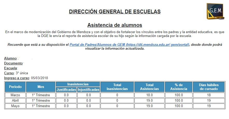 La coordinadora del GEM es ahora Claudia Federici, una mujer de 31 años. Quizás algunos padres atentos ya hayan notado que este programa existe, pues el GEM ha remitido, según detalla Federici, un total de 36.759 mails con el detalle de asistencias e inasistencias de los alumnos al colegio en los últimos meses.