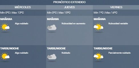 Para la tarde se espera cielo parcialmente nublado o nublado. Vientos leves de direcciones variables con una máxima de 11º.