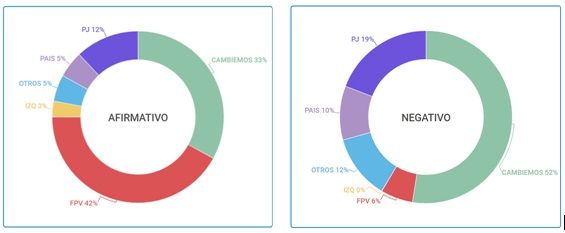 Y en este caso sí vemos un cambio sustancial, y es cómo se dispara el voto en negativo en el caso de la oficialista coalición Cambiemos, paradójicamente la que impulsó el debate legislativo.Luego de más de una década en la que los que hoy masivamente apoyan el proyecto, lo negaron.