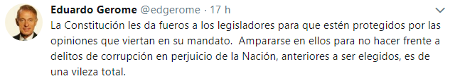 "No me sorprendió en absoluto el escándalo de los cuadernos de las coimas. Hace tiempo hablé de este desbalance que existe entre corruptos y corruptores. La sociedad no tiene una visión muy positiva del sector empresario en la Argentina y justamente dije que estaba faltando que la balanza se empiece a equilibrar para que la sociedad empiece a percibir las relaciones de otra manera. Evidentemente siempre uno es más simpático cuando dice que sí. Pero hay una vida más allá de la obra pública, hay una vida más allá de los funcionarios pícaros, hay una vida más allá de la corrupción. Se puede decir que no a la corrupción, retirarse y hacer otras cosas. También es cierto que cada persona lo vive de manera diferente. Yo no estoy en el cuerpo de quienes están ahora en este problema pero definitivamente no creo que uno tenga que llegar necesariamente a esa encrucijada".