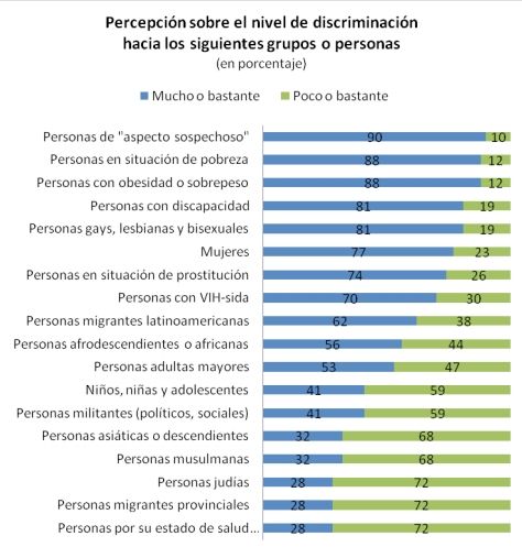 - En las redes sociales es donde más se percibe la discriminación. Le siguen la vía pública, los operativos de las fuerzas de seguridad, el ámbito laboral y los medios de comunicación.