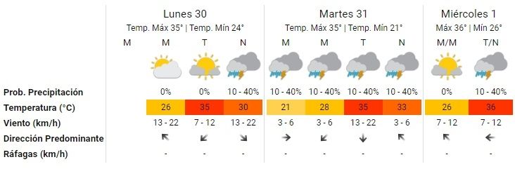 Para hoy la máxima será de 38º para Contingencias Climáticas, 35º para el SMN. Ambos pronósticos coinciden en adelantar tormentas aisladas a partir de la noche.