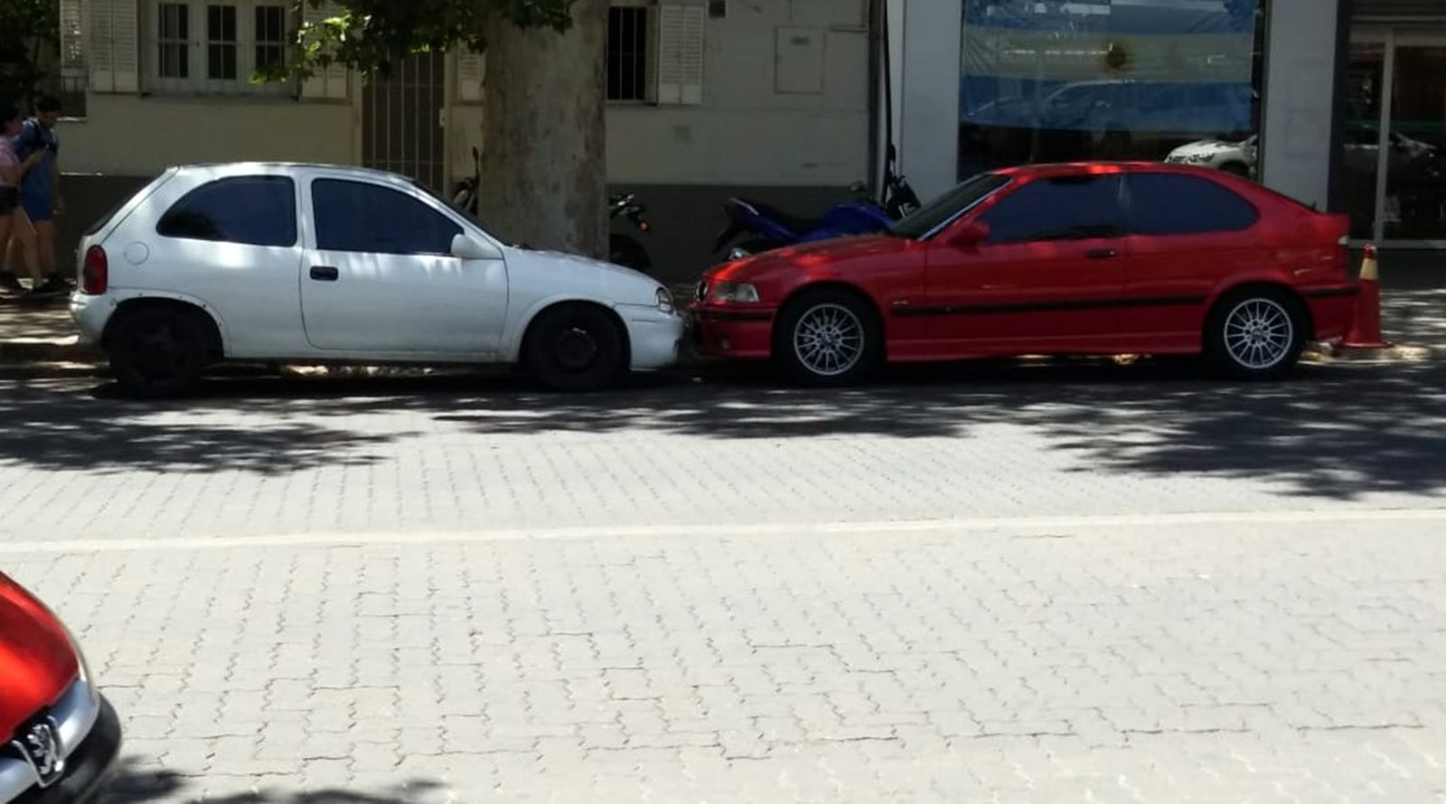 El lector de MDZ captó no sólo la particularidad de los autos enfrentados, sino que además lo hicieron donde el cordón amarillo no deja -o no debería dejar- duda de que ahí está prohibido estacionar.