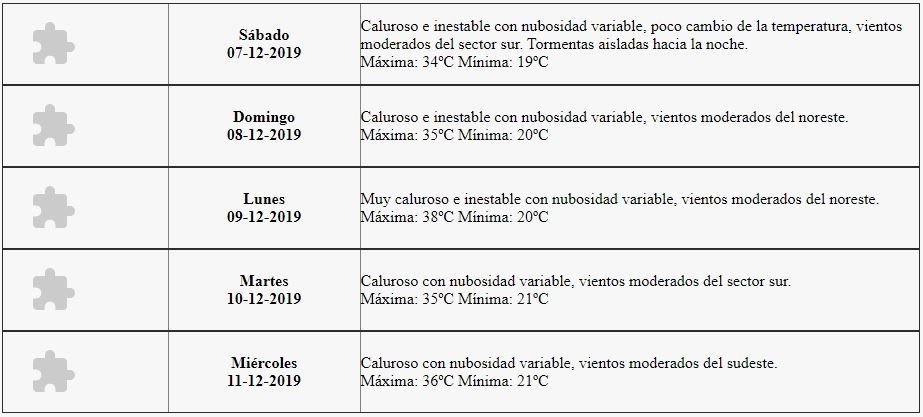 "Caluroso e inestable con nubosidad variable, poco cambio de la temperatura, vientos moderados del sector sur. Tormentas aisladas hacia la noche", indica el pronóstico.