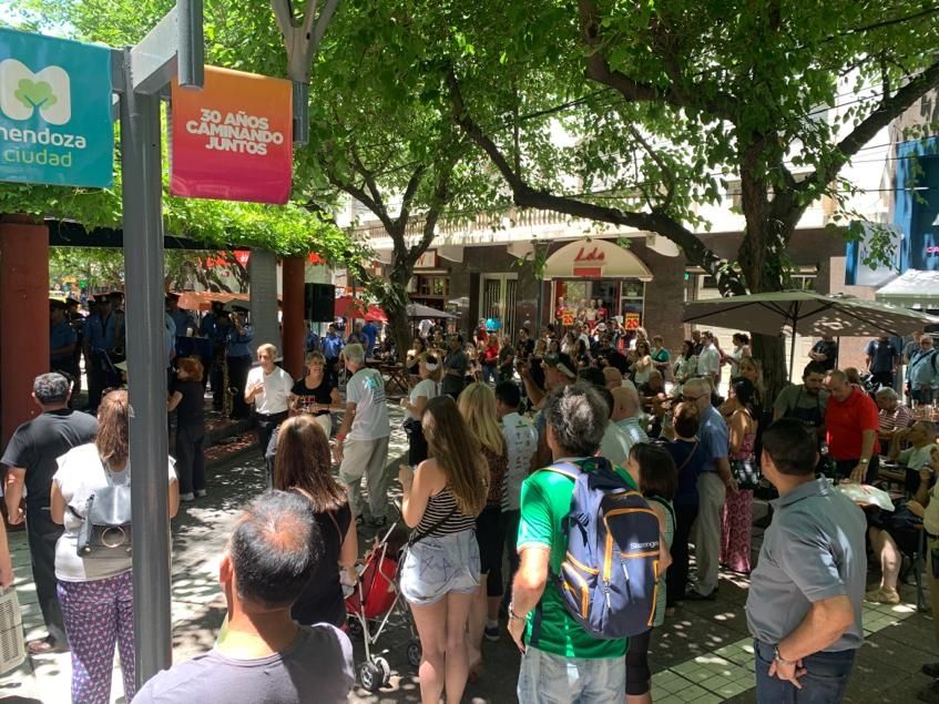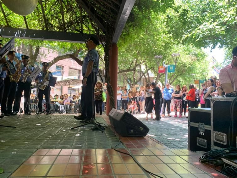 Esta mañana, una comparsa tanguera recorrió la Peatonal Sarmiento, desde Patricias Mendocinas hasta San Martín, acompañada por la Banda de la Policía de Mendoza. Por supuesto, la gente se fue sumando en el recorrido.