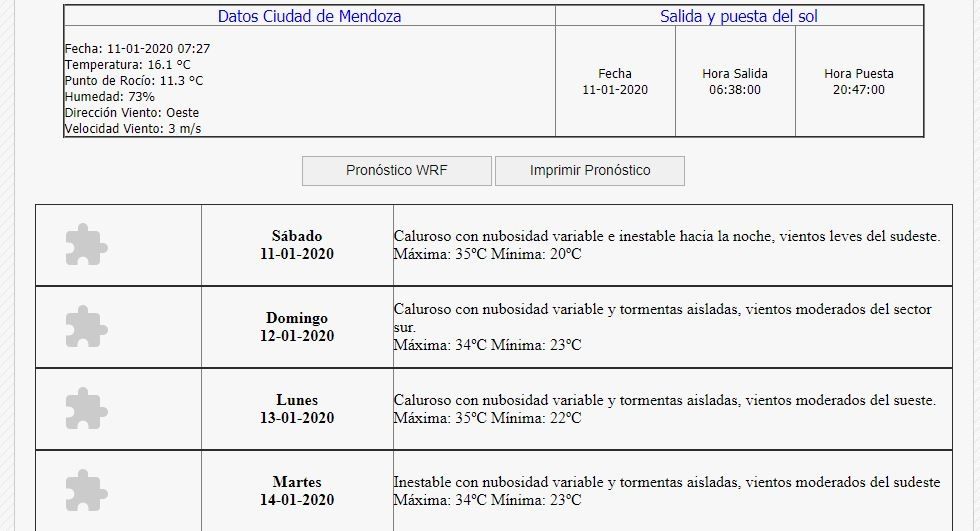 En tanto, el domingo se espera un día similar, sin grandes modificaciones, y con una máxima que alcanzaría los 34 grados y así hasta el miércoles, jornada en la que habrá un marcado descenso de la temperatura.