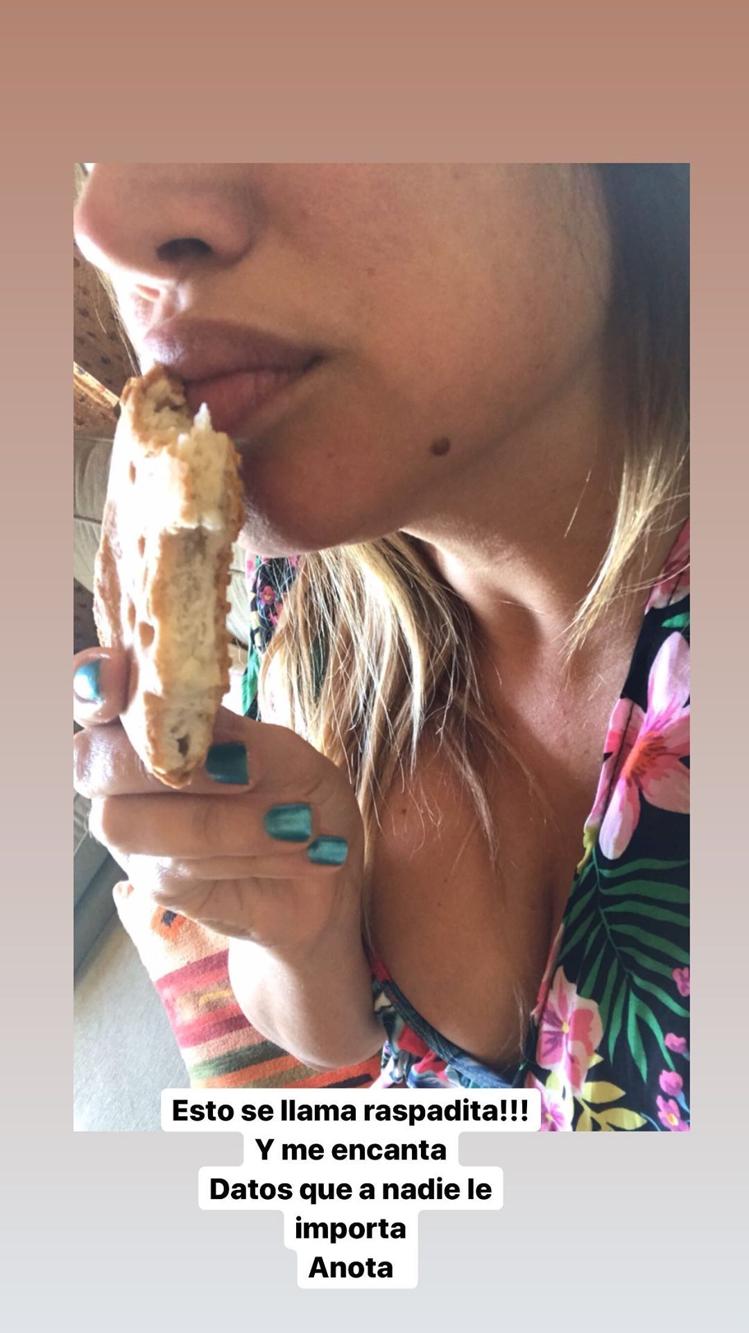 Ahora, la vedette rubia publicó en sus stories de Instagram una imagen sugerente en la que se la ve disfrutando de un tesoro mendocino: una tortita raspada. "Esto se llama raspadita!!! Y me encanta", escribió Francese para acompañar la foto.