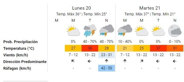 El martes, en tanto, la temperatura seguirá subiendo, y la máxima será de 37º, mientras que la mínima será de 21º.