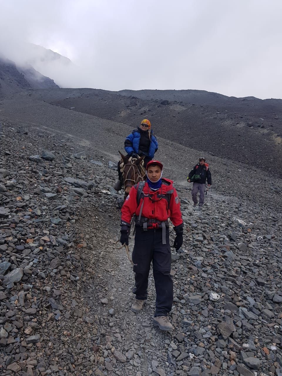 También se solicitó la asistencia del helicóptero de rescate, pero como las condiciones no estaban dadas para su intervención, el refugio Ski Club puso a disposición un arriero y dos mulas para agilizar la asistencia de la persona.