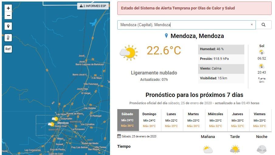Mientras tanto, el Servicio Meteorológico Nacional, continúa con el Alerta temprana por olas de calor y salud.
