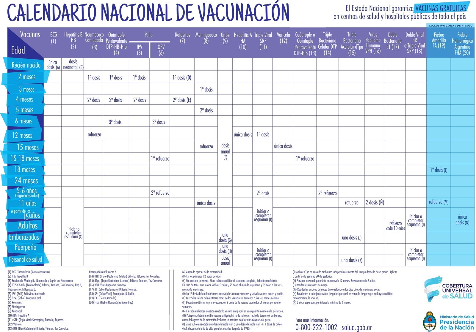 Fiebre Hemorrágica Argentina: se aplica una dosis, esta vacuna se coloca exclusivamente en zonas geográficas de riesgo. Previene la fiebre hemorrágica argentina, una enfermedad infecciosa endémica en el noroeste de la provincia de Buenos Aires, sur de Córdoba, sur de Santa fe y norte de La Pampa.