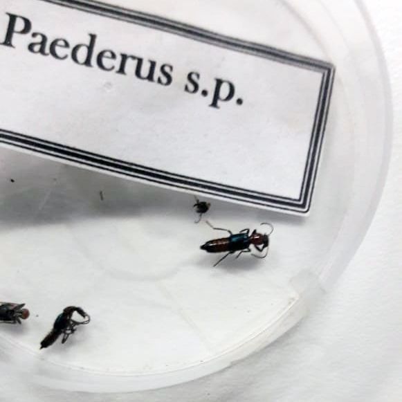 En nuestro país se han registrado sólo dos especies peligrosas: Paederus brasiliensis y Paederus ferus. Ambos insectos son muy similares, teniendo los adultos el cuerpo alargado, de entre 1 y 1.5 cm, con colores vivos: azul o negro metálicos y anaranjado. No muerden ni pican ni ocasionan lesiones sólo por caminar sobre la piel. Sin embargo producen pederina, sustancia que pueden liberar o bien por glándulas que tienen en el extremo del abdomen o si se los daña o aplasta, ya que este compuesto está presente también en su sangre.