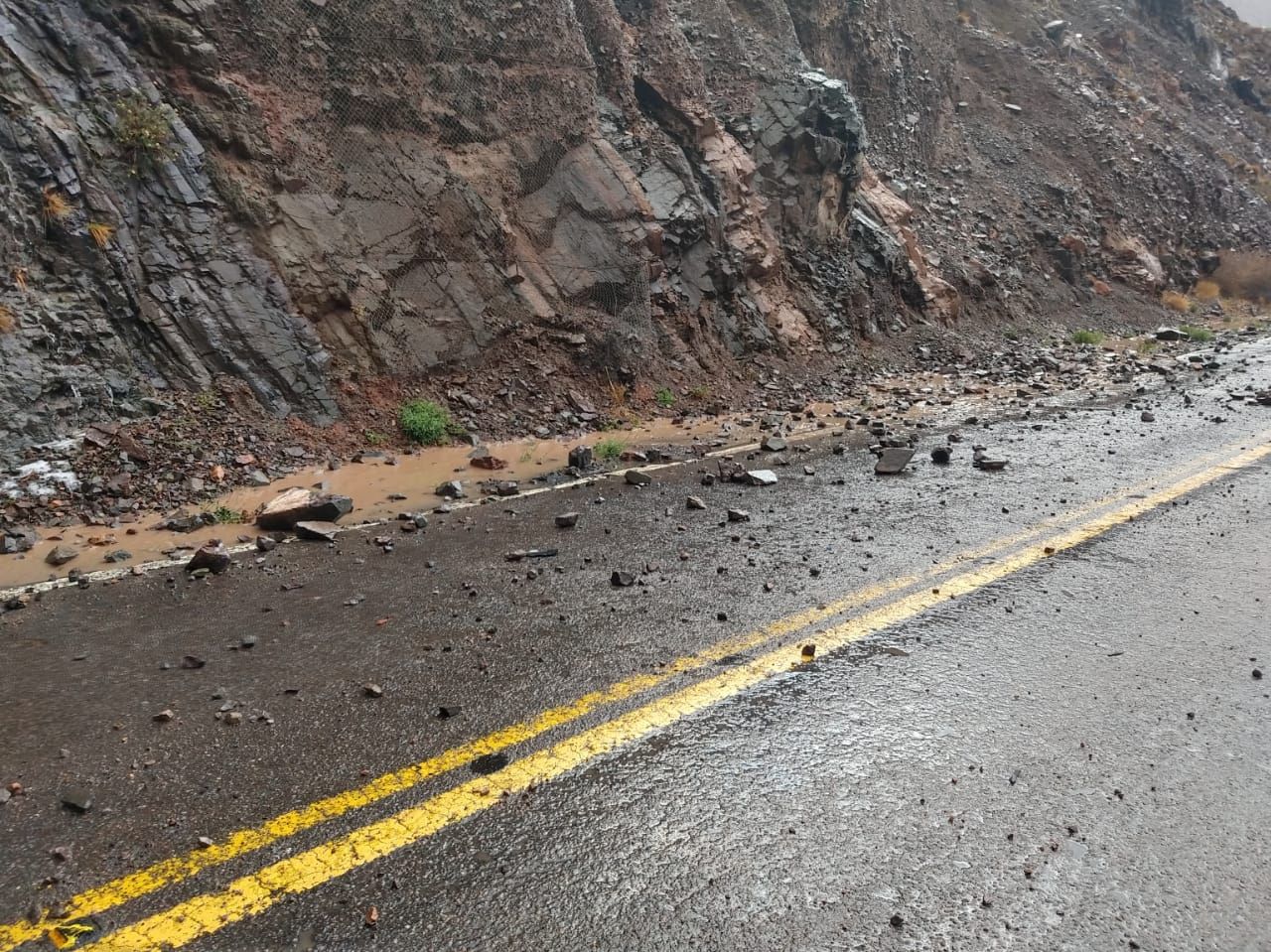El mayor incidente se produjo en el túnel 2, situado a la altura del kilómetro 1122, del camino a Chile, Allí hubo desprendimiento de rocas.