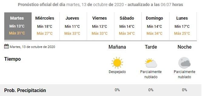 Según adelantaron desde el Servicio Meteorológico Nacional, este martes el termómetro llegará a los 31º pasado el mediodía. La mínima, en tanto, fue de 13º durante la madrugada.