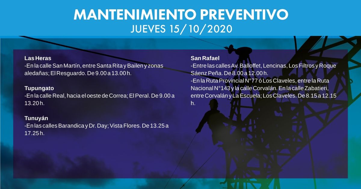 Hoy habrá afectación del servicio eléctrico en las siguientes zonas y horarios. Estas tareas de Edemsa se realizan bajo los protocolos sanitarios establecidos por el covid-19.