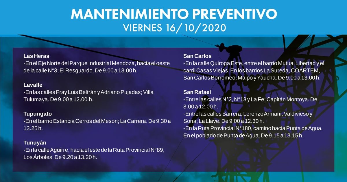 Hoy habrá afectación del servicio eléctrico en las siguientes zonas y horarios. Estas tareas de Edemsa  se realizan bajo los protocolos sanitarios establecidos por el covid-19.