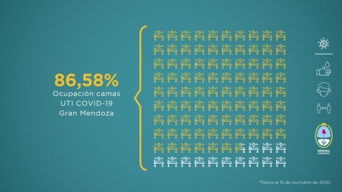 En cuanto al factor ocupacional de las camas de la Unidad de Terapia Intensiva, el Gran Mendoza es del 86,58% y el 79,71% en todo el territorio mendocino.