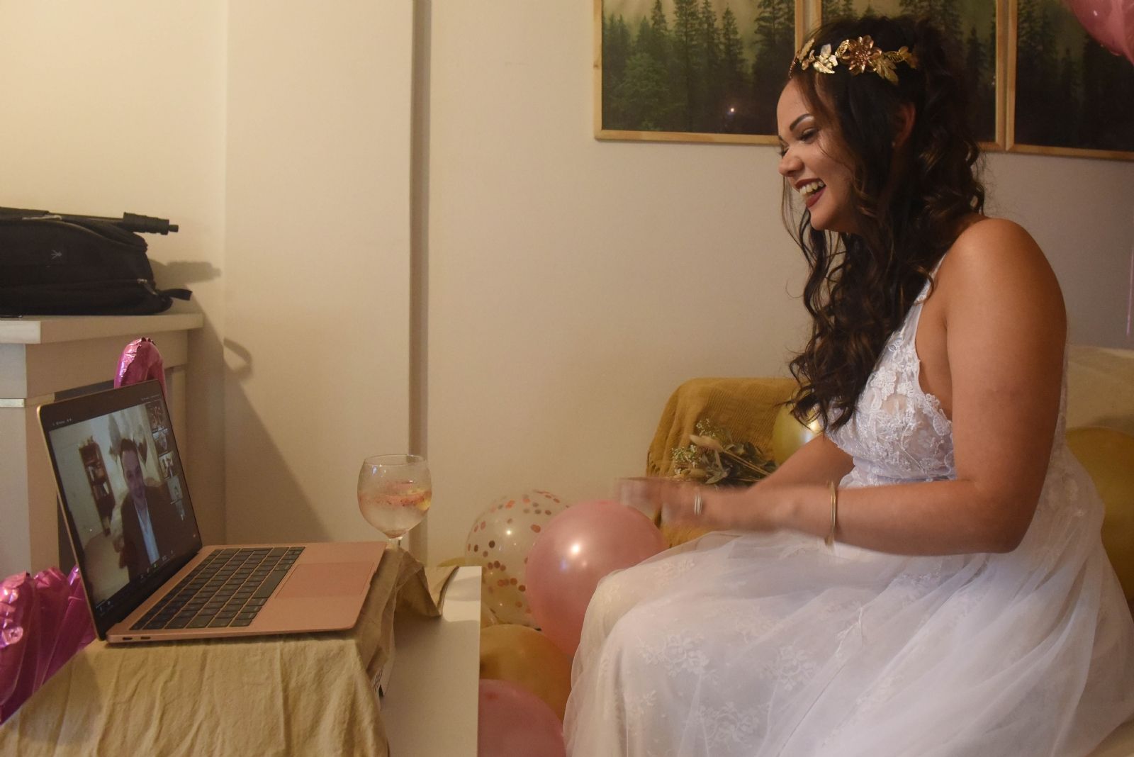 Durante la boda civil, vía plataforma Zoom, se casaron Agustina Vidal Montefiori, de 28 años y en Rosario y Scott Marmon, de 34 y emplazado en Nueva York, quienes dieron el tradicional ´si, quiero´ separados por 10 mil kilómetros de distancia.