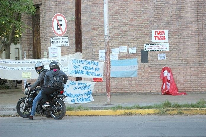 Los manifestantes pegaron letreros en las paredes de la sede del Obispado local reclamando su dimisión del prelado. Hace unos meses, monseñor Taussig viajó a Roma y en el contexto de una audiencia con el papa Francisco, le planteó la situación y su preocupación por el futuro de los seminaristas locales.