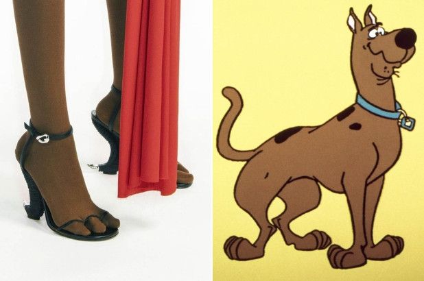 La escritora de moda Hannah Tindle fue una de las primeras en realizar la humorística comparación de los zapatos con el icónico personaje animado de Scooby Doo, La comparación con el flamante producto de Givenchy se llenó de comentarios y retuits rápidamente.