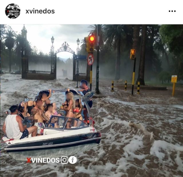 El espacio en la red social que "picó en punta" y fue de los que primero comenzó a publicar algunos de los chistes gráficos más divertidos fue la cuenta de Instagram @xvinedos, cuyo meme en el que muestra a una de las lanchas que fueron multadas en El Carrizal por hacer una fiesta acuática en la zona de los portones del Parque General San Martín fue uno de los más festejados.