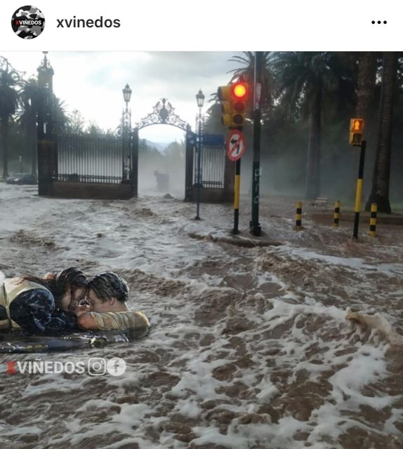 Una de las películas mas taquilleras de todos los tiempos, "Titanic", también fue objeto del humor mendocino. La icónica escena llegando al final del film, en el que el personaje de Kate Winslet sobrevive mientras que el de Leonardo Di Caprio muere congelado, fue también utilizada. Algunos incluso, decidieron incluir en el meme el tema de Celine Dion:
