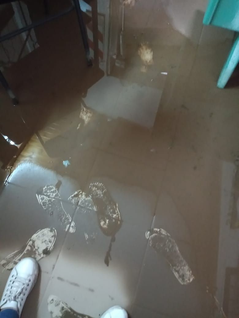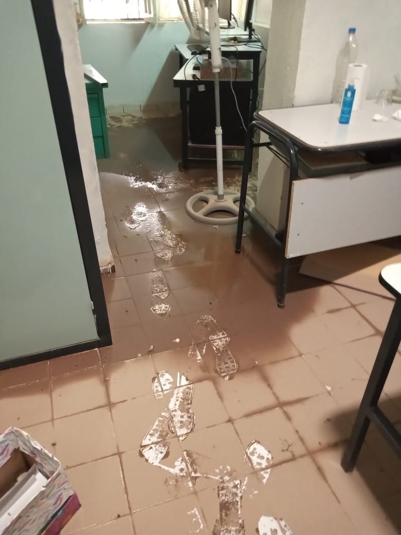 Este establecimiento educativo que atiende a adultos privados de su libertad sufrió el colapso de sus instalaciones con las filtraciones por agua de lluvia, que inundaron los pisos de aulas, baños y el área administrativa.
