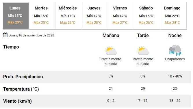 En detalle, el Servicio Meteorológico Nacional informó que para este lunes el tiempo en Mendoza presentará una mínima de 15°C y una máxima de 29°C. Durante el día, además, se mantendrá parcialmente nublado y por la noche las probabilidades de lluvias alcanzarán un 40%.